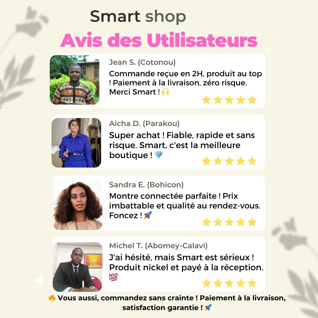Chez Smart, nous nous engageons à vous offrir une expérience d'achat exceptionnelle. Voici pourquoi vous devriez nous faire confiance :