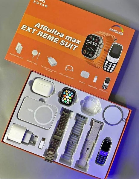 Découvrez la A16 Ultra Max , la montre qui redéfinit la technologie et le style ! Elle ne se limite pas à vous donner l'heure : elle vous offre une expérience ultra-connectée , avec un petit téléphone inclus , une connexion Bluetooth rapidetrois bracelets interchangeables pour s'adapter à toutes vos envies. Que ce soit pour le travail, le sport ou les sorties, elle est votre alliée au quotidien !