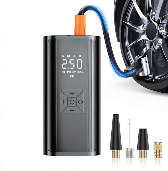 Ce gonfleur de pneus numérique est bien plus qu’un simple compresseur d’air : c’est un outil multifonction qui combine une pompe puissante, une batterie externe (power bank) et une torche LED intégrée. Que vous soyez en déplacement, en voyage ou confronté à une situation d'urgence, ce dispositif devient rapidement indispensable. Il vous permet de regonfler vos pneus, recharger votre téléphone et éclairer votre environnement… tout avec un seul appareil compact.