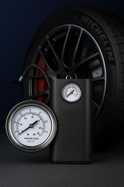 Avec son design moderne et ultra-compact, ce mini gonfleur tient dans une seule main et se glisse facilement dans une boîte à gants, un sac ou même une poche de blouson. Léger mais robuste, il est conçu pour être utilisé n’importe où sans effort. Grâce à son interface intuitive et son écran LED lisible, vous pouvez surveiller la pression (en PSI, BAR, KPA ou Kg/cm²) et ajuster en toute simplicité.